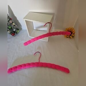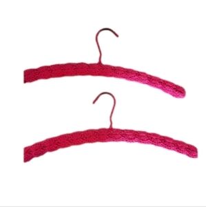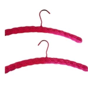 Hand Crafted Crochet hanger Vintage Neon Pink Upcycled crochet wooden hangers