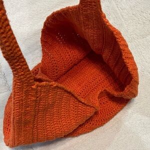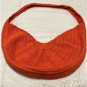 Hand Crafted, Crocheted Orange Half Moon Bag EUC