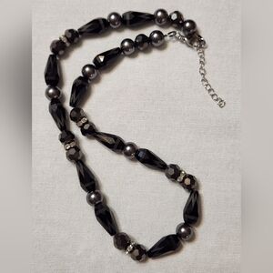 Hand Crafted Elegant Black Gray and Silver Beaded Necklace and Earring Set