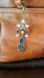 This stunning piece of bag jewelry features a captivating green and gold design with faux pearls and a cameo, perfect for adding a touch of elegance to any purse, bag, tote, crossbody, wristlet and more. The intricate detailing and vibrant colors make it a standout piece in any jewelry collection.