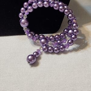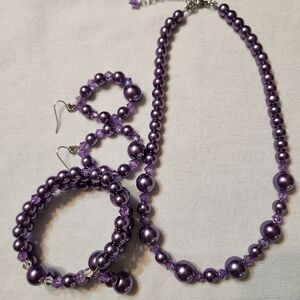 The purple pearls are accented with purple and clear crystal bicones. Giving the set some sparkle.