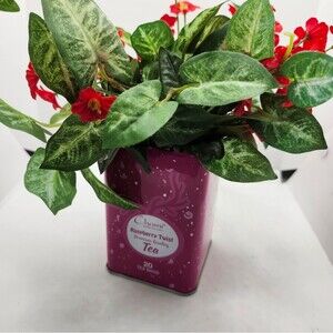 Hand Crafted Floral Table Centerpiece Spring Red Flower Tea Tin