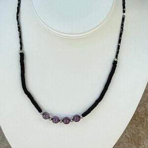 Hand Crafted Four Purple Round Glass Beads on Clay and Black Seed Beads