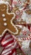Charming wreath with gingerbread figures and candy cane ribbons. Ideal for holiday decoration. Final Sale