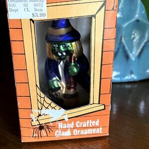 Hand Crafted Glass Halloween Ornament Witch 2001 Target 3 1/2" Tall