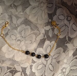 Elegant bracelet with gold plated chain and black lava beads. Handcrafted design. Perfect for any occasion.