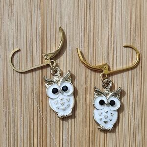 Charming owl earrings with gold hooks. Perfect for any occasion.