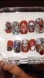 Gothic-themed press-on nails featuring red and black designs with skulls and intricate patterns. Perfect for a bold statement look.