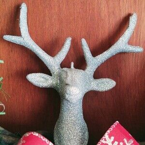 Made from an 18" all natural grapevine wreath, greenery, stems with bells & berries, deer ornaments, glitter deer and a colorful bow!