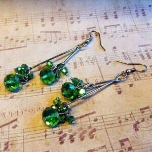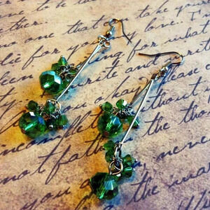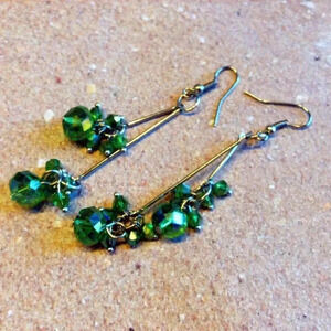 Hand Crafted Green Faceted Czech Crystal 80mm Long Double Dangle Earrings