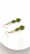 Charming handmade dangle earrings featuring a green floral design. Accented with gold details.