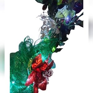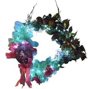 Hand Crafted GreenHandmade Holiday Wreath Santa's Wall Door decor String Lights