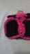 Hand Crafted Hand Knit Crochet Hand bag black & Barbie Pink Bow silhouette 6"x4"