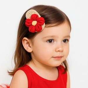 Keep your hairstyle looking fab and flawless all day long with the Handcrafted Snap Hair Clip, hand knit beige crochet & red flower