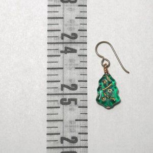 Hand Crafted Handmade Czech Glass Green Christmas Tree Earrings