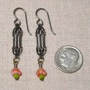 Hand Crafted Handmade Earrings Arts & Crafts Style Brass Coral Pink Bell…