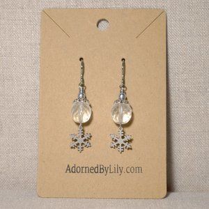 Hand Crafted Handmade Earrings Snowflake Earrings with Frosted Czech Gla…