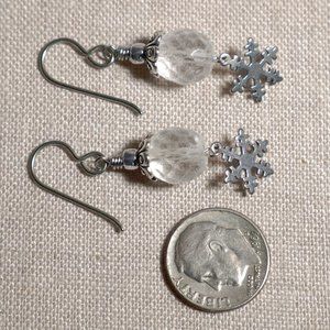 Tags: long earrings, dangle earrings, dangling earrings, winter earrings, Christmas earrings, holiday earrings, hypoallergenic ear wires, niobium, anodized niobium, neutral earrings, clear earrings, Tierracast, handmade, hand crafted, AdornedByLily, artisan, quality, gift