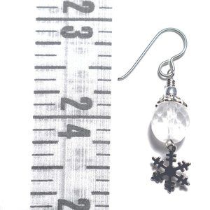 Adorned By Lily™ Stainless Steel Snowflake Earrings with Frosted, Faceted Czech Glass Beads and Hypoallergenic Anodized Niobium Ear Wires