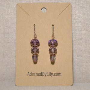 dangle earrings, dangling earrings, petite earrings, lavender earrings, Tanzanite lavender, Czech glass earrings, pastel earrings, handmade earrings, spring earrings, Easter earrings, lightweight earrings, feminine earrings, artisan earrings, hypoallergenic, anodized titanium ear wires, quality, gift, hand crafted