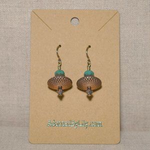Hand Crafted Handmade Earrings Teal & Copper UFO Saucer Bead Earrings