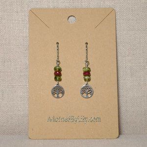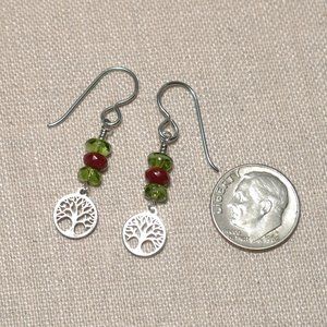 Adorned By Lily™ Stainless Steel Tree of Life Earrings with Faceted Green & Red Czech Glass Beads & Hypoallergenic Anodized Niobium Ear Wires