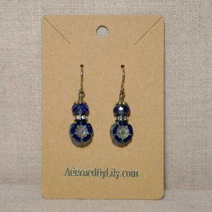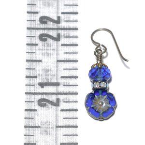 Hand Crafted Handmade Earrings Vintage Style Cobalt Blue Flower Earrings
