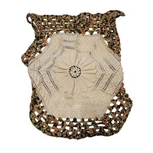 Sheer is perfect to wear with something underneath hollow-out fishnet pattern in the center, which features a Hexagon shape Crochet with a flower doily style, giving just an ultra-romantic Aesthetic to this one-of-a-kind wearable textile art piece made by seller @eclectic_artist