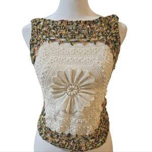 Hand Crafted Hexagon Silhouette Crochet Top Cotton & Acrylic Boho Multicolored