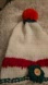 Hand Crafted Holiday Pom Pom Beanie Handmade white red and green floral detail