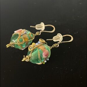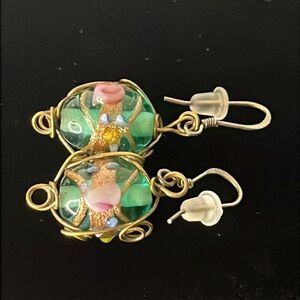 Hand Crafted Lampwork Glass Bead Gold Wire Scroll Dangle Sterling Hook Earrings