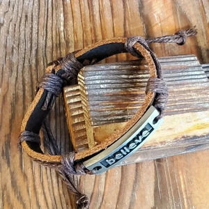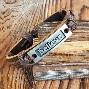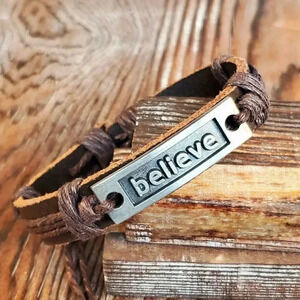 Hand Crafted Leather Believe Mindfulness Positive Affirmation Bracelet