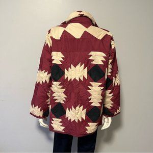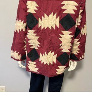Hand Crafted Lightweight Maroon, Black, Cream Patchwork Spring Jacket One Size