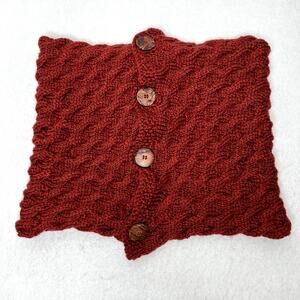 Hand Crafted Maroon Knit Button Infinity Scarf