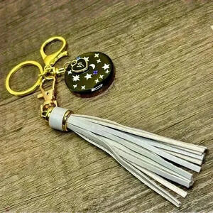 Hand Crafted Medallion Capricorn Charm and Gray Tassel Gold Tone Keychain