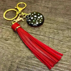 Hand Crafted Medallion Scorpio Charm and Red Tassel Gold Tone Keychain