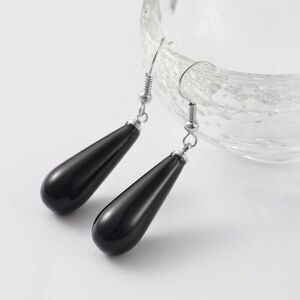 Handcrafted Minimalist Teardrop Black Onyx Natural Gemstone Pendant Earrings