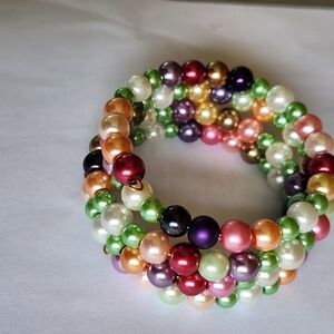 Hand Crafted Multicolor Pearl Memory Wire Wrap Beaded Bracelet