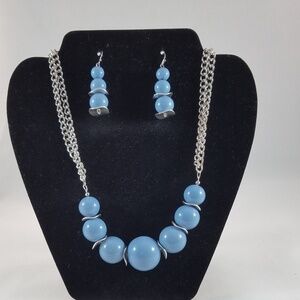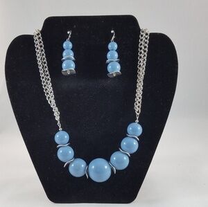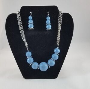 Hand Crafted Necklace and Earrings Set Sky Blue Graduated Beads Silver Findings