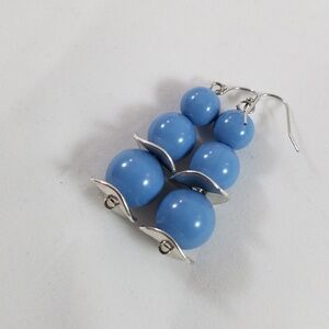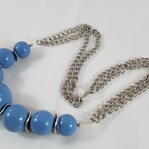 The wavy discs (spacers) and chain are silver. The blue beads are 12 - 18mm.