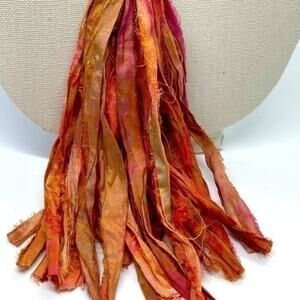 HandCrafted Orange Green Bohemian Beaded W Indian Silk Tassel Necklace NWT