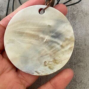 Hand Crafted Owl Pendant Natural Round Shell Black Cord Necklace Adjustable
