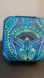 This zippered portable jewelry box is a nice light turquoise color with dark blue, white and turquoise flowers painted in the Ukrainian Petrykivka style folk art
