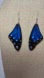 Hand Crafted Painted Resin Blue Butterfly Wing Earrings