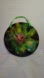 The colors are green, turquoise, orange, black, brown, mustard, with metallic paint giving it a nice shimmer. The back is covered in felt. Hangs from a purple satin ribbon to match the colors, ready to hang on your wall. Sprayed with a protective high gloss finish. Perfect for a sun porch, beach house or lanai too.