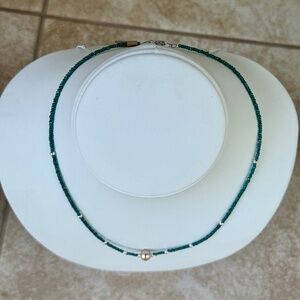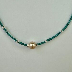 Hand Crafted Pearl Focal Beaded Green Seed Beads Necklace