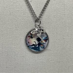 Pink Blue Yellow Fairy Glass Cabochon With Fairy Charm Attached