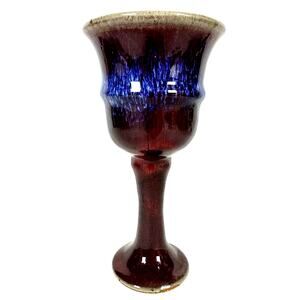 This handcrafted pottery wine glass has a very unique brown and bright blue glaze that truly makes this a one-of-a-kind goblet! The goblet stands at 7.75" H x 4" in diameter and is in pristine mint condition! Make this goblet a part of your wine glass serve ware or gift it to that special someone that loves wine as much as you do! # 3825