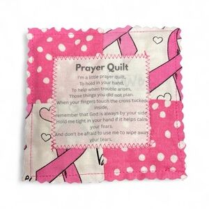 Each prayer quilt is lovingly hand made and includes an uplifting prayer along with tucked inside a small wooden cross, bringing peace, encouragement, and a reminder of God’s presence.