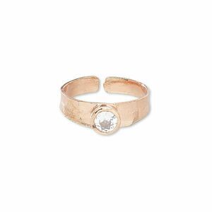 Handrafted ring made in India by metal jewelry craftersBold minimalist avant garde stylingMade with genuine solid copperFeatures a round cut cubic zirconia (CZ) manmade faux diamond in an 6mm settingAdjustable and resizableFits US ring size 5.5 and larger without overlapping the adjustable band on the underside of the ring